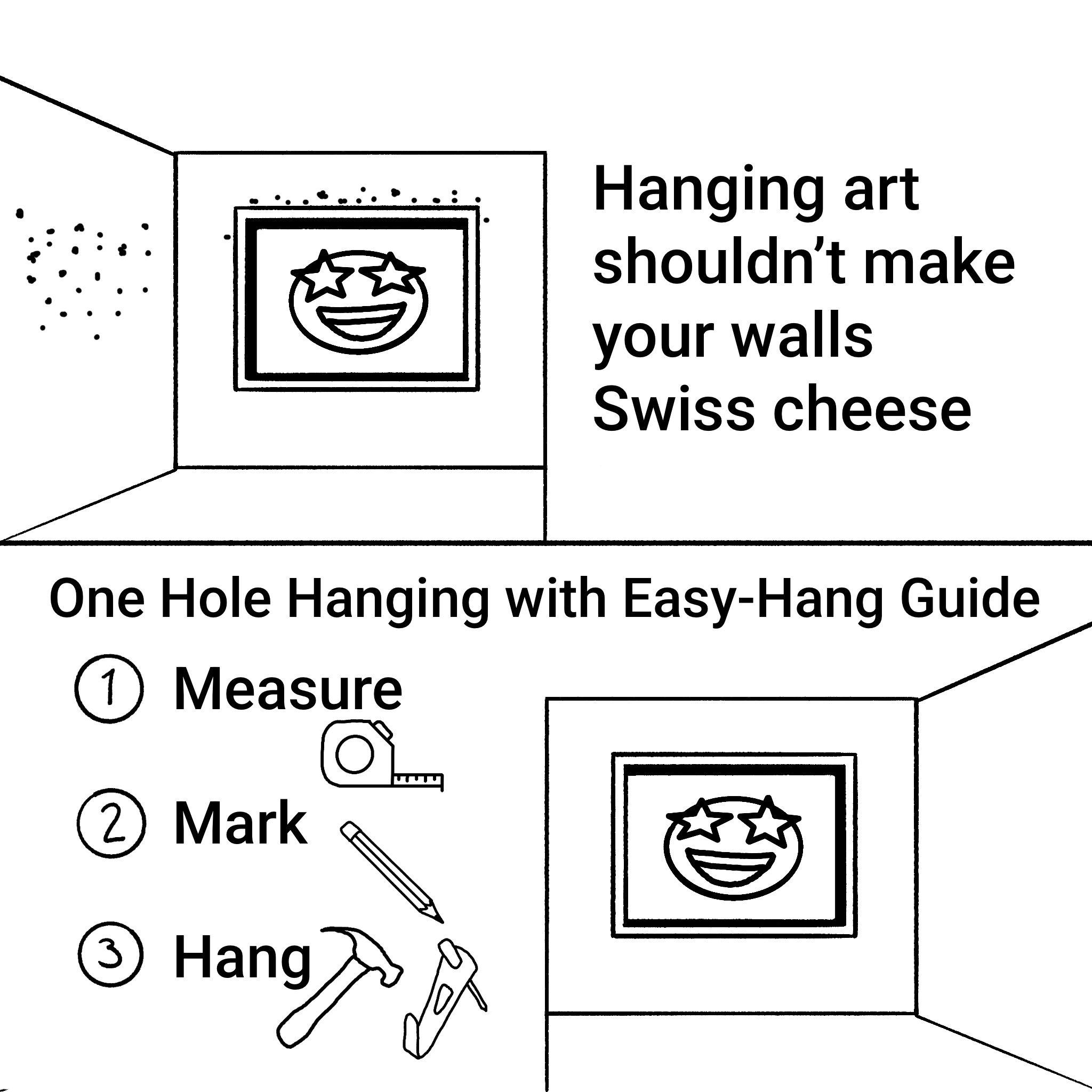 So my Easy-Hang Guide hangs your artwork from the box in minutes with a single hole.